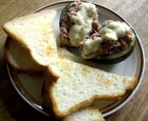- Az avokádót félbe vágjuk,kivesszuk a magot.A mag hejére teszunk egykevés ontetet,áttort fokhagymát,erre halmozzuk a tonhalat és még egykevés ontetet teszunk rá.Pirítóssal vagy tortilla csipszel tálaljuk.